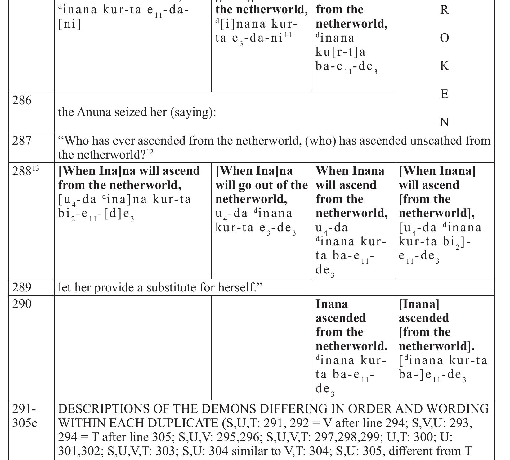 Lines 282-306 in the work Inana's Descent to the Netherworld are the opening lines of the section... more Lines 282-306 in the work Inana's Descent to the Netherworld are the opening lines of the section situated between two literary units: the recounting of Inana's journey to the netherworld and the recounting of Dumuzi's descent to the netherworld. These lines are characterized by various textual differences, as well as multiple repetitions of the phrase "Inana ascended from the netherworld," in both the temporal and indicative clauses. By examining each one of the repetitive phrases and its adjacent paragraph, the article traces the gradual development of that passage from one sentence into a paragraph of ca. 30 lines.