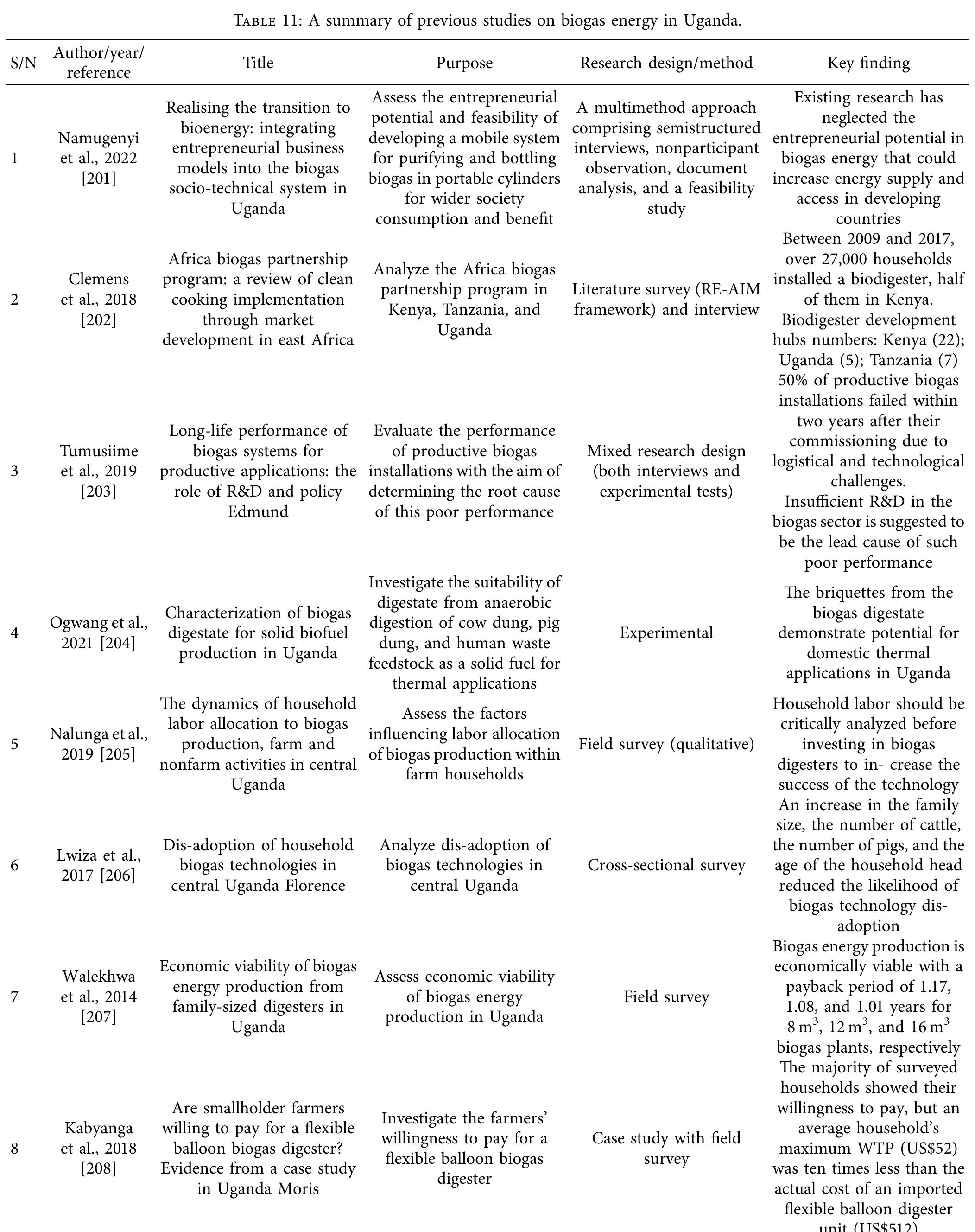 We live in a world that is completely dependent on energy; thus, humankind can no longer live wit... more We live in a world that is completely dependent on energy; thus, humankind can no longer live without power. With electricity being the main form of energy today, this has increased the complexity of our life today. In Uganda, electricity generation is mainly through hydropower, which puts the country in the bottleneck of overdependence on one source of energy. ere are many energy systems out there that the country can use to diversify its electricity generation. erefore, the need to understand the level of development and utilization of various energy systems has been the underlying question for this present study. A comprehensive literature survey was conducted using electronic databases, including ScienceDirect, Wiley, Sage, Scopus, Taylor & Francis, and Google Scholar. e publications in the form of reports, conference papers, working papers, discussion papers, journal articles, book sections, and textbooks were considered in this study. In total, 11 energy systems, including human and animal energy, solid biomass (rewood), hydropower, wind, geothermal, solar, nuclear, peat, coal, petroleum, and nonsolid biomass (methanol, hydrogen, ethanol, biodiesel, and biogas), are described. e current and future development and utilization of these energy systems have been described. e challenges for developing and utilizing these systems were elaborated on, and the solutions for their challenges were presented. Hydropower from the Nile River, being the main river for large hydropower plant construction, is the dominant energy system in Uganda. Nuclear energy will be the salvation for the country's electric energy supply in the near future. erefore, Uganda needs to bet big on nuclear energy.