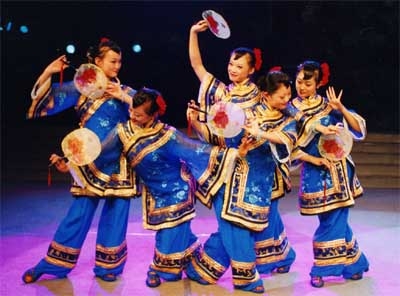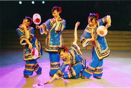 Immerse yourself in the elegance of the Qing Dynasty with this stunning royal blue Manchu dance costume, featuring intricate gold embroidery and traditional wide sleeves. Crafted for stage performance, the ensemble includes a flowing robe, decorative cloud collar, and matching handheld fans to enhance graceful movements. Perfect for cultural festivals, dance competitions, or historical theater, this outfit captures the regal spirit of ancient Chinese palace life. The high-quality fabric and detailed craftsmanship ensure durability and visual impact under stage lights, making it an essential choice for traditional dance troupes.