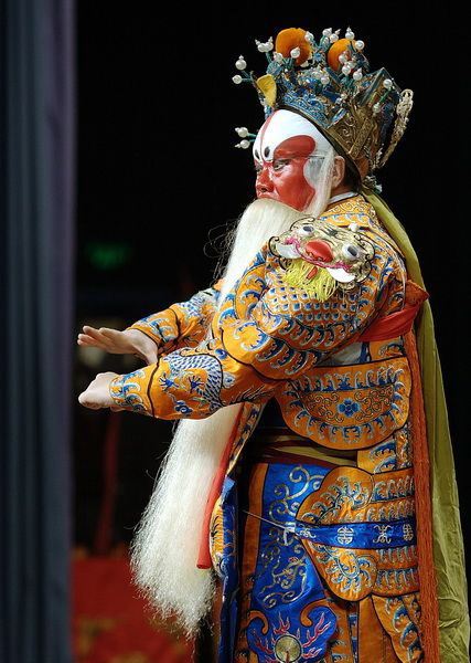 This authentic Peking Opera costume features a magnificent yellow robe adorned with intricate dragon embroidery, symbolizing imperial power and nobility. Designed for male general roles, the ensemble includes flowing blue water sleeves and a traditional headdress to enhance dramatic stage movements. Crafted with high-quality fabrics and detailed handiwork, this outfit is perfect for professional theater performances, cultural festivals, and traditional art exhibitions. The striking red and white facial makeup paired with the long white beard captures the essence of legendary historical warriors.