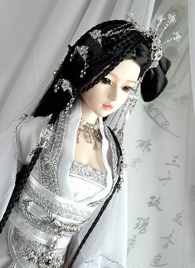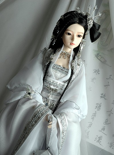 This exquisite white and silver Hanfu set features intricate metallic embroidery and flowing layers, perfectly tailored for 1/3 scale BJD dolls. Designed to reflect traditional Chinese bridal aesthetics, the ensemble includes a detailed chest panel, wide sleeves, and an ornate hairpiece. Ideal for doll collectors and cosplay photographers, this ancient-style outfit adds a majestic and cultural touch to any display.