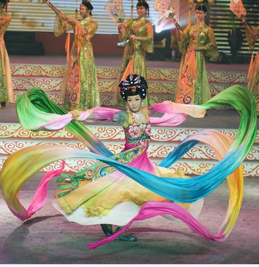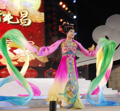 This stunning traditional Chinese ribbon dance costume features vibrant gradient colors and intricate floral embroidery, perfect for captivating stage performances. Designed with extra-long, flowing silk ribbons, it allows dancers to create mesmerizing visual effects inspired by ancient folk arts. Ideal for cultural festivals, galas, and professional dance competitions, this outfit embodies the elegance and grace of Chinese heritage. The lightweight, breathable fabric ensures comfort during movement while the detailed peacock and flower motifs add a touch of regal beauty.