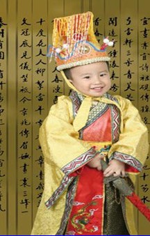 This exquisite traditional Chinese wedding groom costume is designed for young boys, featuring a vibrant gold and red color scheme that symbolizes prosperity and joy. The outfit includes an ornate, tall hat with colorful tassels and a layered robe with intricate embroidery, perfect for authentic cultural representation. Ideal for Lunar New Year celebrations, wedding ceremonies as a ring bearer, or professional photography shoots, this Tang-style suit brings festive elegance to any occasion. Crafted from soft, durable materials, it ensures comfort for active children while honoring rich cultural heritage during special events.