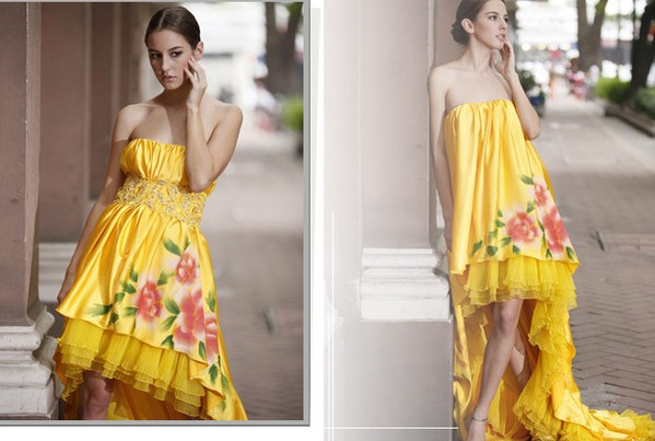 Crafted from luxurious, smooth satin fabric, this vibrant yellow Cheongsam features exquisite multi-colored embroidery that sweeps elegantly across the chest. The classic design includes a traditional Mandarin collar and delicate frog buttons, offering a timeless silhouette that flatters the figure. Perfect for weddings, tea ceremonies, or formal gatherings, this dress beautifully blends traditional Chinese heritage with modern sophistication.