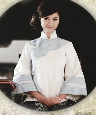 Embrace the refined elegance of the Republican era with this exquisite two-piece traditional Chinese ensemble. The set features a white blouse adorned with delicate blue embroidery, a classic mandarin collar, and traditional frog buttons, paired with a luxurious patterned blue skirt. Perfect for tea ceremonies, calligraphy displays, or cultural photography, this outfit beautifully captures the sophisticated aesthetic of early 20th-century Chinese fashion. Made from high-quality fabrics, it offers a comfortable fit while honoring the rich heritage of Minguo style.
