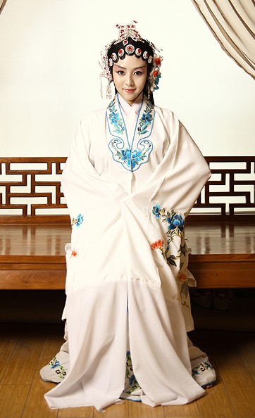 Immerse yourself in the elegance of traditional Chinese theater with this exquisite white opera costume, designed specifically for the graceful female Dan role. The robe showcases intricate floral and bird embroidery in vibrant hues against pristine fabric, complemented by signature long water sleeves that enable expressive, flowing movements essential for stage storytelling. This complete ensemble, including a detailed headdress, is crafted for durability and visual impact, making it ideal for professional opera performances, cultural showcases, and artistic photography. Embody the timeless beauty of Chinese heritage with this authentic and meticulously detailed garment.