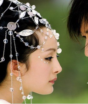 This exquisite headpiece features intricate silver leaf motifs adorned with sparkling crystals and delicate dangling chains that frame the face beautifully. Designed to evoke the ethereal beauty of Chinese ancient fairies and goddesses, it is the perfect accessory for traditional Hanfu styling. Ideal for cosplay, stage performances, or special occasions like weddings and photography shoots, adding a touch of celestial elegance to any outfit.