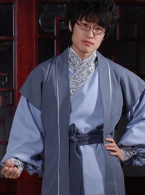 Embrace the elegance of ancient China with this exquisite men's Hanfu costume, featuring a sophisticated blue-grey color palette and intricate patterned detailing on the cuffs and collar. Crafted for comfort and movement, this traditional cross-collar robe includes wide sleeves perfect for Tai Chi practice, martial arts performance, or historical cosplay events. The layered design combines a textured inner garment with a smooth outer jacket, offering an authentic look for cultural festivals and photography sessions. Ideal for enthusiasts of traditional culture, this outfit allows you to step into the role of a refined scholar from China's rich history.