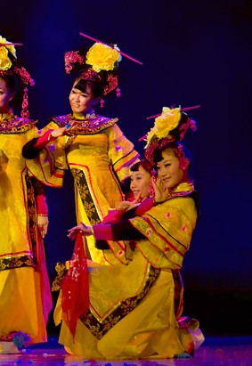 Traditional Chinese Yellow Qing Dynasty Court Lady Dance Costume for Women Stage Performance Folk Dance