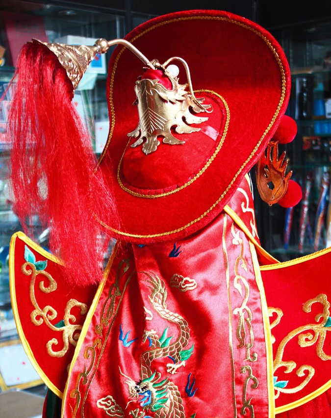 Step into the spotlight with this majestic Traditional Chinese Opera General Costume, featuring a vibrant red robe adorned with intricate gold dragon embroidery. Crafted from high-quality fabric, this complete ensemble includes a dramatic flowing cape, structured shoulder armor, and an elaborate headdress with red pom-poms for an authentic theatrical look. Perfect for stage performances, cultural festivals, or themed events, this outfit captures the essence of ancient Chinese warrior aesthetics. The detailed craftsmanship and bold colors make it an ideal choice for actors and enthusiasts looking to embody the grandeur of Peking Opera.