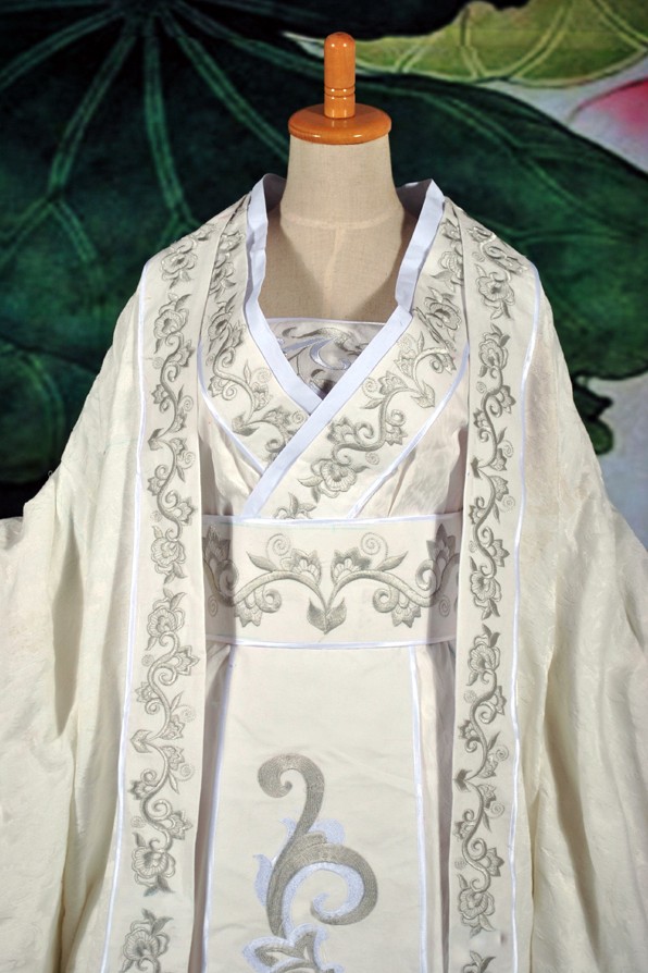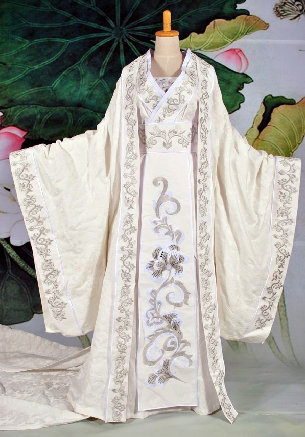 Step into the world of ancient legends with this exquisite white Hanfu, designed to embody the grace of a celestial fairy or royal princess. Crafted from flowing, premium fabric featuring intricate jacquard patterns, this traditional Chinese costume boasts dramatic wide sleeves that create a stunning visual effect in motion. Perfect for historical cosplay, cultural festivals, or professional photography, this ensemble captures the ethereal beauty and elegance of classic Chinese dramas. The look is completed with a majestic gold headpiece, allowing you to fully immerse yourself in the rich heritage of traditional culture.
