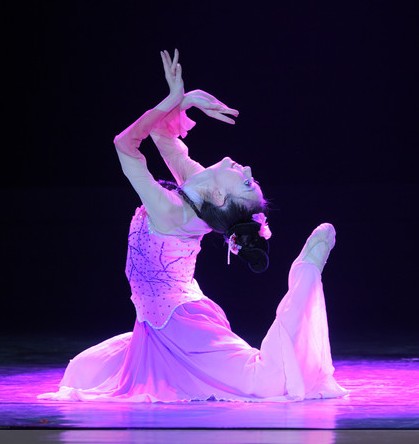 This stunning classical Chinese dance costume features a beautiful gradient transition from soft pink to deep purple, designed to captivate audiences on stage. Crafted from lightweight, flowing fabrics, the dress includes traditional long "water sleeves" that extend the dancer's movements and add dramatic flair to every gesture. The fitted bodice and floor-length skirt ensure freedom of movement while maintaining an elegant silhouette, perfect for folk dance competitions or cultural galas. Embodying the grace of traditional Chinese aesthetics, this outfit is ideal for performers seeking a professional look that combines heritage with modern stage presence.
