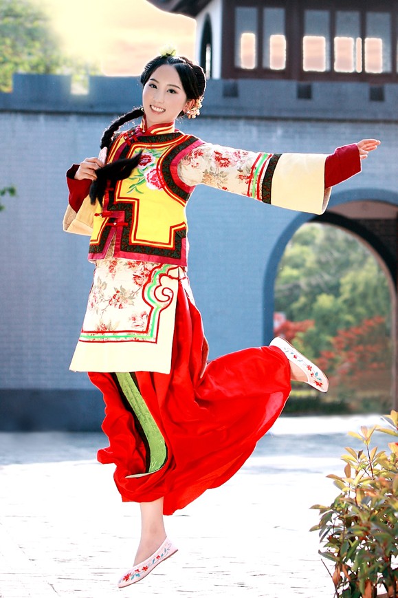 Step back in time with this exquisite Qing Dynasty Manchu princess costume, featuring a vibrant yellow jacket adorned with intricate floral embroidery and traditional frog buttons. Designed with authentic details like a mandarin collar and rich red accents, this ensemble perfectly captures the grace and dignity of ancient Chinese nobility. Crafted for comfort and visual impact, it is ideal for historical reenactments, cultural festivals, traditional photography, or stage performances. Embrace the beauty of imperial heritage with this stunning outfit that celebrates the sophisticated artistry of traditional Chinese textile design.