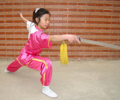 Youth Pink Satin Wushu Uniform Traditional Chinese Kung Fu Martial Arts Performance Costume for Girls