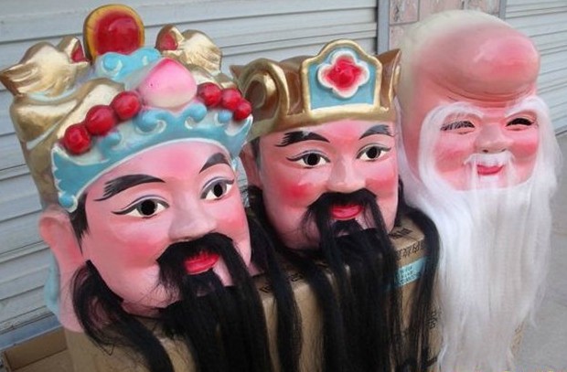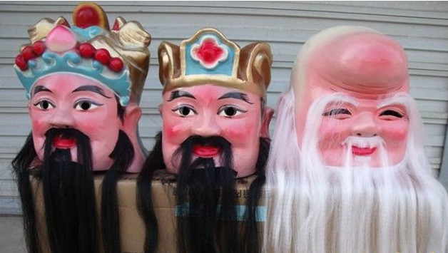 Traditional Chinese Sanxing God Masks Fu Lu Shou Fortune Prosperity Longevity Parade Costume Set for Cultural Festivals