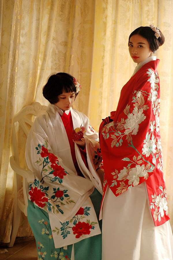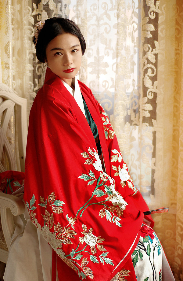 Embrace elegance with this stunning traditional Chinese Hanfu, featuring a vibrant red outer robe adorned with exquisite white and gold floral embroidery. Crafted from high-quality fabric, this formal attire is perfect for weddings, tea ceremonies, and cultural performances, symbolizing luck and prosperity. The ensemble is designed to drape beautifully and is often paired with a hand fan, completing the authentic look for any special occasion or photography session.