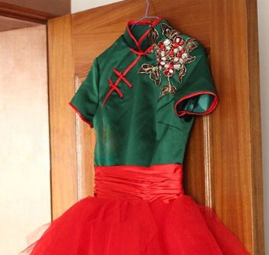 This stunning ensemble blends the elegance of a traditional green satin Cheongsam top with a whimsical, modern pink tulle tutu skirt. The top features classic Mandarin collar styling, intricate frog buttons, and a delicate floral brooch, while the voluminous skirt adds a playful, contemporary dance element. Perfect for stage performances, cultural fusion dance recitals, or artistic photography, this outfit celebrates Chinese heritage with a fresh, creative twist.