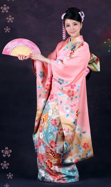 Embrace the elegance of Japanese tradition with this stunning pink floral kimono, featuring intricate designs of cherry blossoms and butterflies that symbolize beauty and renewal. Crafted from high-quality fabric with a lustrous sheen, this garment includes a decorative wide obi sash and long furisode sleeves perfect for formal occasions. Ideal for cultural festivals, tea ceremonies, stage performances, or photography, this complete set allows you to experience the sophisticated charm of authentic Asian attire. The vibrant color palette and detailed patterns make it a standout choice for anyone looking to celebrate Japanese heritage.