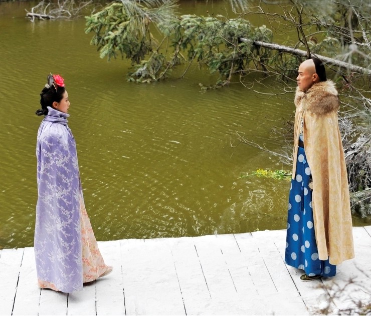 Step back in time with this exquisite Qing Dynasty-inspired Manchu princess cape, featuring delicate white floral embroidery on soft lavender fabric. Designed for winter warmth and elegance, this traditional cloak includes a high collar and intricate knot buttons, perfect for historical cosplay or cultural photography. The ensemble captures the grace of ancient Chinese nobility, making it an ideal choice for enthusiasts of traditional attire and period dramas.