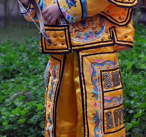 Immerse your child in the rich history of China with this exquisite Traditional Peking Opera General costume, featuring vibrant yellow fabric and intricate dragon embroidery. The ensemble includes a detailed armor-style tunic with a central protective mirror and decorative plating, paired with a matching helmet adorned with a striking red plume. Crafted with attention to authentic detail, this outfit is ideal for stage performances, cultural festivals, Halloween cosplay, or traditional holiday celebrations. Celebrate the artistry of ancient Chinese theater while ensuring your child stands out with this majestic and culturally significant attire.