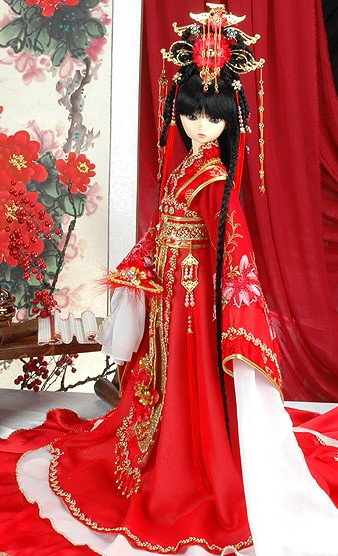 Immerse your doll in the elegance of ancient China with this exquisite traditional wedding Hanfu set, featuring a vibrant red robe and intricate gold embroidery. The ensemble includes a magnificent, ornate golden headdress with dangling tassels that perfectly replicates the regal attire of a historic Chinese bride. Crafted from premium fabrics with detailed stitching, this costume captures the cultural significance of red and gold as symbols of prosperity and joy. Ideal for BJD and Smart Doll collectors, this complete bridal outfit transforms your doll into a stunning centerpiece for display and photography.
