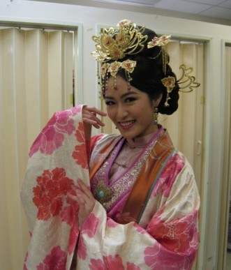 This exquisite traditional Japanese furisode kimono features a stunning white base adorned with vibrant pink floral motifs, symbolizing beauty and grace. The complete ensemble includes layered collars in rich purple and gold tones, creating a luxurious silhouette perfect for formal ceremonies, weddings, or cultural performances. Accompanied by an elaborate golden kanzashi headpiece, this outfit captures the essence of classical Japanese elegance. Crafted with high-quality fabrics, it offers an authentic experience for those wishing to embrace traditional Asian fashion.