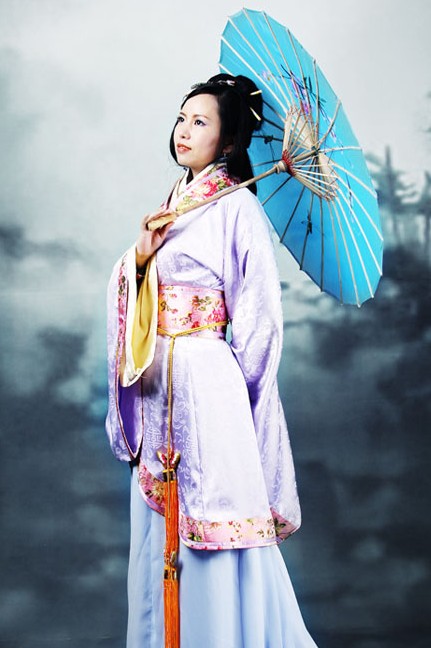 Step into history with this exquisite purple Hanfu, featuring delicate floral embroidery on the wide sleeves and collar that captures the grace of ancient Chinese nobility. Crafted from flowing, high-quality fabrics, this traditional costume includes a matching sash with a long tassel, perfect for creating a fluid silhouette during movement. Ideal for cultural performances, cosplay events, or traditional photography, this ensemble allows you to embody the elegance of a classical Chinese fairy. The look is beautifully complemented by the classic blue oil-paper umbrella, enhancing the historical atmosphere for a complete traditional experience.