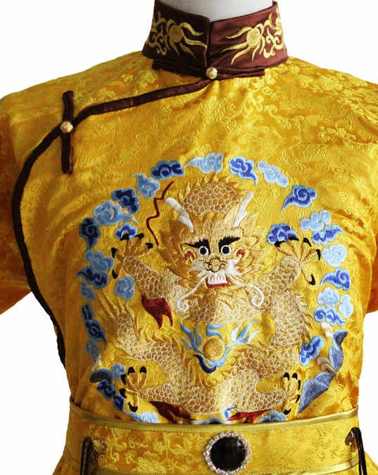 Step into history with this exquisite Men's Qing Dynasty Imperial Yellow Dragon Robe, designed to replicate the majestic attire of ancient Chinese emperors. Crafted from high-quality fabric with intricate blue and gold dragon embroidery on the chest, this traditional changshan features a classic mandarin collar and decorative cuff details. Perfect for historical reenactments, stage performances, or immersive cosplay, this costume captures the regal essence of the Qing Dynasty court. The ensemble includes a matching belt with ornate tassels, completing the authentic look for any traditional Chinese cultural event.