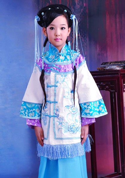 Step into the elegance of ancient China with this exquisite Qing Dynasty princess costume designed specifically for young girls. Featuring intricate embroidery in vibrant shades of blue and purple, this traditional Manchu-style outfit includes wide sleeves and delicate fringe details that authentically mimic royal attire. Perfect for cultural festivals, stage performances, or historical cosplay, this ensemble allows children to experience the beauty of Chinese heritage. The high-quality fabric ensures comfort for all-day wear while the authentic design captures the grace of a traditional Chinese noblewoman.