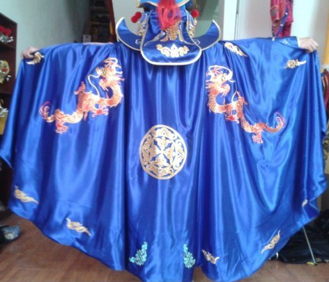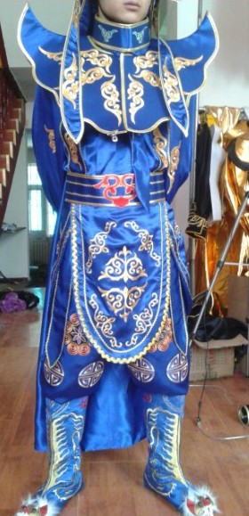 Immerse yourself in the grandeur of ancient China with this exquisite royal blue general's costume, designed for authentic Peking Opera performances and cultural showcases. Crafted from high-quality lustrous fabric, the ensemble features intricate gold dragon and cloud embroidery, complete with imposing shoulder armor and a magnificent headdress adorned with red pom-poms. This complete warrior attire is perfect for stage actors, cultural enthusiasts, and cosplayers looking to embody the spirit of a legendary Chinese hero. The detailed craftsmanship captures the essence of traditional Chinese theatrical art, making it a stunning choice for festivals, competitions, or professional photography.