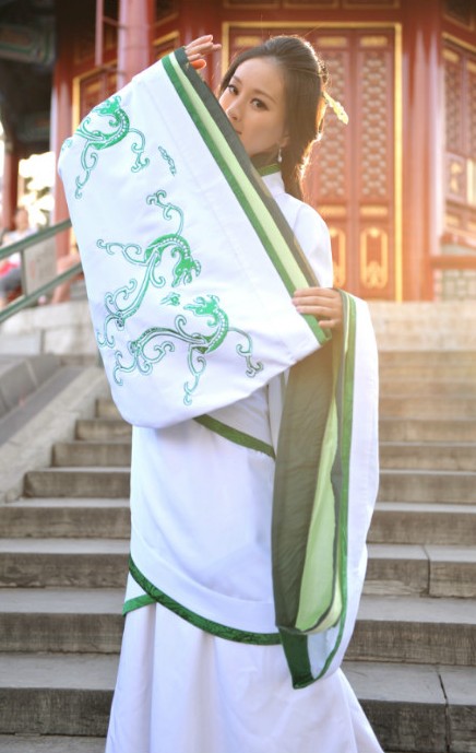 Step into history with this exquisite white and green Hanfu, featuring traditional wide sleeves and intricate dragon-inspired embroidery. Crafted from high-quality, breathable fabric, this elegant robe offers a comfortable fit perfect for cultural performances, photography, or cosplay events. The classic cross-collar design and flowing silhouette capture the grace of ancient Chinese nobility. Whether attending a festival or staging a photoshoot, this garment allows you to embody the timeless beauty of Chinese heritage.