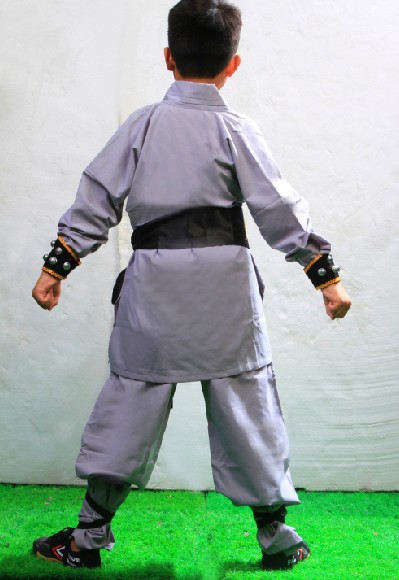 This traditional grey Shaolin monk costume is designed for young martial artists, featuring a classic cross-collar tunic and loose-fitting trousers for maximum flexibility. The outfit includes a distinctive black sash embroidered with gold Chinese characters meaning "Shaolin Martial Monk," along with matching wrist cuffs for an authentic look. Crafted from breathable, durable fabric, this uniform allows for unrestricted movement during Kung Fu training, Tai Chi practice, or cultural performances. Perfect for Halloween, cosplay events, or daily practice, this complete set captures the spirit of ancient Chinese warrior culture.