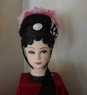This exquisite traditional Chinese wig captures the elegance of the Qing Dynasty, featuring a voluminous black base adorned with intricate silver floral ornaments and soft pink feathers. Designed for authenticity, this headpiece is perfect for Peking Opera performances, historical reenactments, and traditional culture enthusiasts looking to embody a noble princess or "Gege." The detailed craftsmanship ensures a stunning visual impact, making it an essential accessory for any classical Chinese dance or theatrical production.