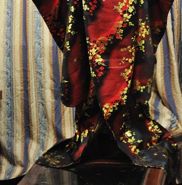 Women's Traditional Japanese Red and Black Floral Satin Kimono Costume for Festivals and Cosplay