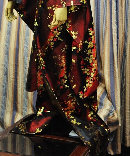 Embrace the elegance of Japan with this stunning traditional kimono featuring a striking red and black color palette adorned with intricate gold and red floral embroidery. Crafted from high-quality, lustrous satin fabric, this full-length garment includes wide furisode-style sleeves and a complementary obi sash for an authentic silhouette. Perfect for cultural festivals, cosplay events, or theatrical performances, this attire captures the timeless beauty of Japanese heritage. The rich colors and detailed design make it an ideal choice for anyone wishing to experience the grace of ancient Asian fashion.