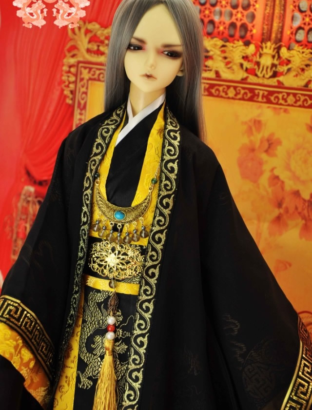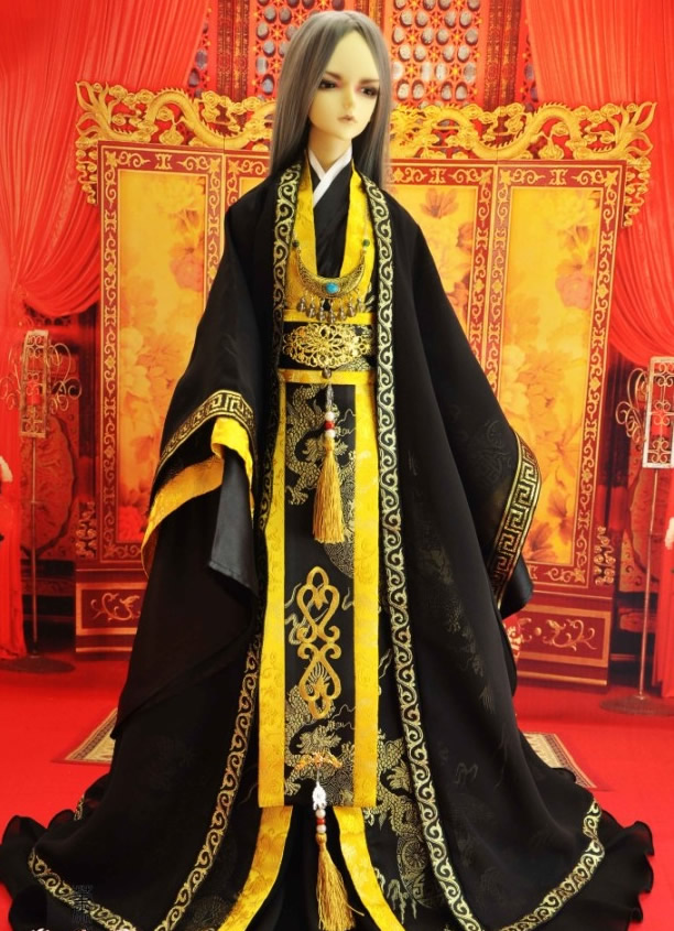 Ancient Chinese Emperor Hanfu Costume Black Gold Imperial Robe for BJD Doll Traditional Clothing