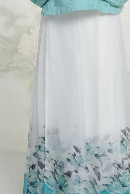 Embrace the elegance of ancient China with this exquisite Ming Dynasty-style Hanfu set, featuring a sophisticated mint green cross-collar top and a flowing white skirt. The skirt showcases a beautiful gradient design with traditional ink-wash floral patterns at the hem, creating a graceful silhouette perfect for movement. Crafted from breathable, high-quality fabrics, this outfit is ideal for tea ceremonies, cultural festivals, historical reenactments, or artistic photography sessions. Complete with authentic wide sleeves and a scholarly aesthetic, this ensemble allows you to experience the timeless beauty of traditional Chinese heritage.