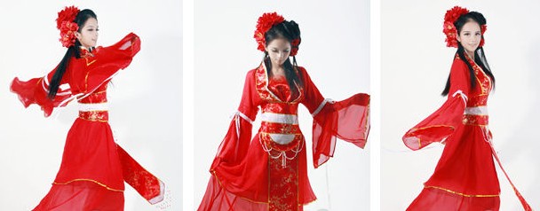 Embody the elegance of ancient China with this stunning red Hanfu wedding dress, featuring intricate gold embroidery that symbolizes prosperity and joy. Crafted from flowing fabrics, this costume boasts wide sleeves and a graceful silhouette perfect for stage performances, traditional ceremonies, or cosplay. The outfit includes a detailed bodice and a layered skirt, offering an authentic look for cultural festivals or bridal photography. Designed to celebrate traditional Chinese aesthetics, this attire allows you to experience the timeless beauty of historic fashion.