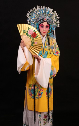 Step into the spotlight with this exquisite traditional Chinese Peking Opera costume, designed specifically for the elegant Hua Dan role. The vibrant yellow robe features intricate embroidery of auspicious symbols and comes with flowing white water sleeves for dramatic movement. This complete set includes a stunning, beaded phoenix headpiece and a decorative fan, making it perfect for stage performances, cultural festivals, or theatrical photography. Crafted with high-quality fabrics, this outfit captures the timeless beauty and rich history of Beijing Opera art.