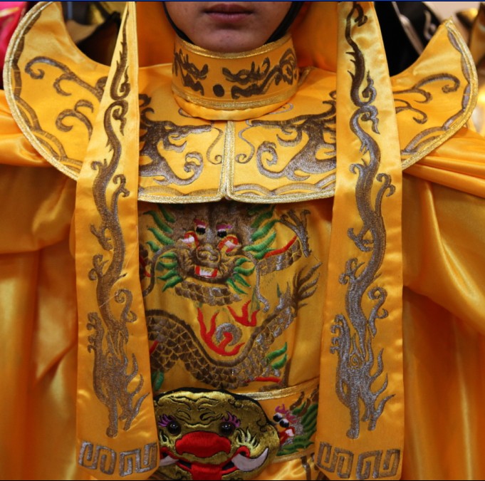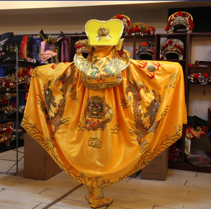 Immerse yourself in imperial majesty with this exquisite Traditional Chinese Emperor Dragon Robe costume, designed specifically for men portraying the God of Wealth or royalty. Crafted from luxurious yellow satin fabric, the ensemble features intricate golden dragon embroidery and flowing wave patterns that symbolize power, prosperity, and good fortune. This complete set includes a detailed embroidered cape, a majestic ceremonial headdress, and matching boots, making it perfect for Chinese New Year celebrations, temple fairs, and traditional opera performances. Whether you are performing on stage or participating in cultural festivals, this authentic attire ensures a commanding presence and honors rich Chinese heritage.