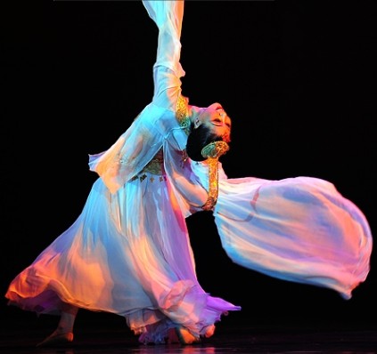 This exquisite white dance costume captures the ethereal beauty of traditional Chinese classical dance with its flowing silhouette and intricate detailing. The ensemble features a heavily embellished bodice with gold embroidery and sequins, paired with lightweight, billowing trousers that accentuate every movement. It includes a matching ornate headpiece that adds a touch of royal elegance and authenticity to the overall look. Perfect for stage performances, cultural exhibitions, and dance competitions, this outfit allows dancers to express grace and fluidity.