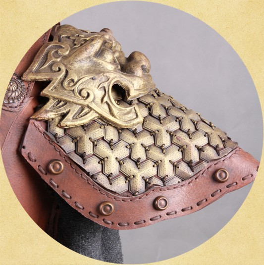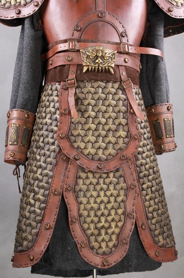 This exquisite full-body armor set replicates the majestic style of ancient Chinese generals, featuring a distinctive hexagonal "mountain pattern" scale design known as Shan Wen Kai. Crafted with durable leather and intricately linked metal-toned scales, the ensemble includes a detailed helmet with a crimson tassel, protective shoulder guards, and a layered skirt for authentic movement. Ideal for historical reenactments, stage performances, and high-quality cosplay, this suit captures the grandeur of traditional Chinese martial culture and craftsmanship.