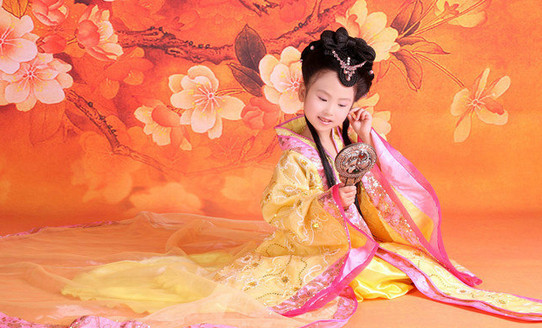 This exquisite yellow and pink Hanfu costume captures the elegance of ancient Chinese royalty, perfect for young girls to embody a traditional princess. Crafted from luxurious, shiny fabrics with delicate floral embroidery, it features flowing wide sleeves and a long, dramatic train for a fairy-like appearance. Ideal for cultural festivals, stage performances, Halloween parties, or imaginative dress-up play, this outfit allows children to explore rich heritage through fashion. The comfortable design includes a secure sash and breathable layers, ensuring your child looks stunning while moving freely during their performance.