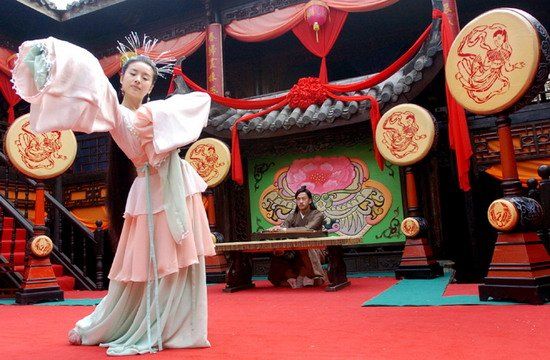 Zhu Yingtai is a beautiful and intelligent young woman, the ninth child and only daughter of the wealthy Zhu family of Shangyu, Zhejiang. Although traditions of that era discourage females from going to school, Zhu manages to convince her father to allow her to attend classes in disguise as a young man. During her journey to Hangzhou, she meets Liang Shanbo, a scholar from Kuaiji (present-day Shaoxing). They chat and feel a strong affinity for each other at their first meeting. Hence, they gather some soil as incense and take an oath of fraternity in the pavilion of a thatched bridge.