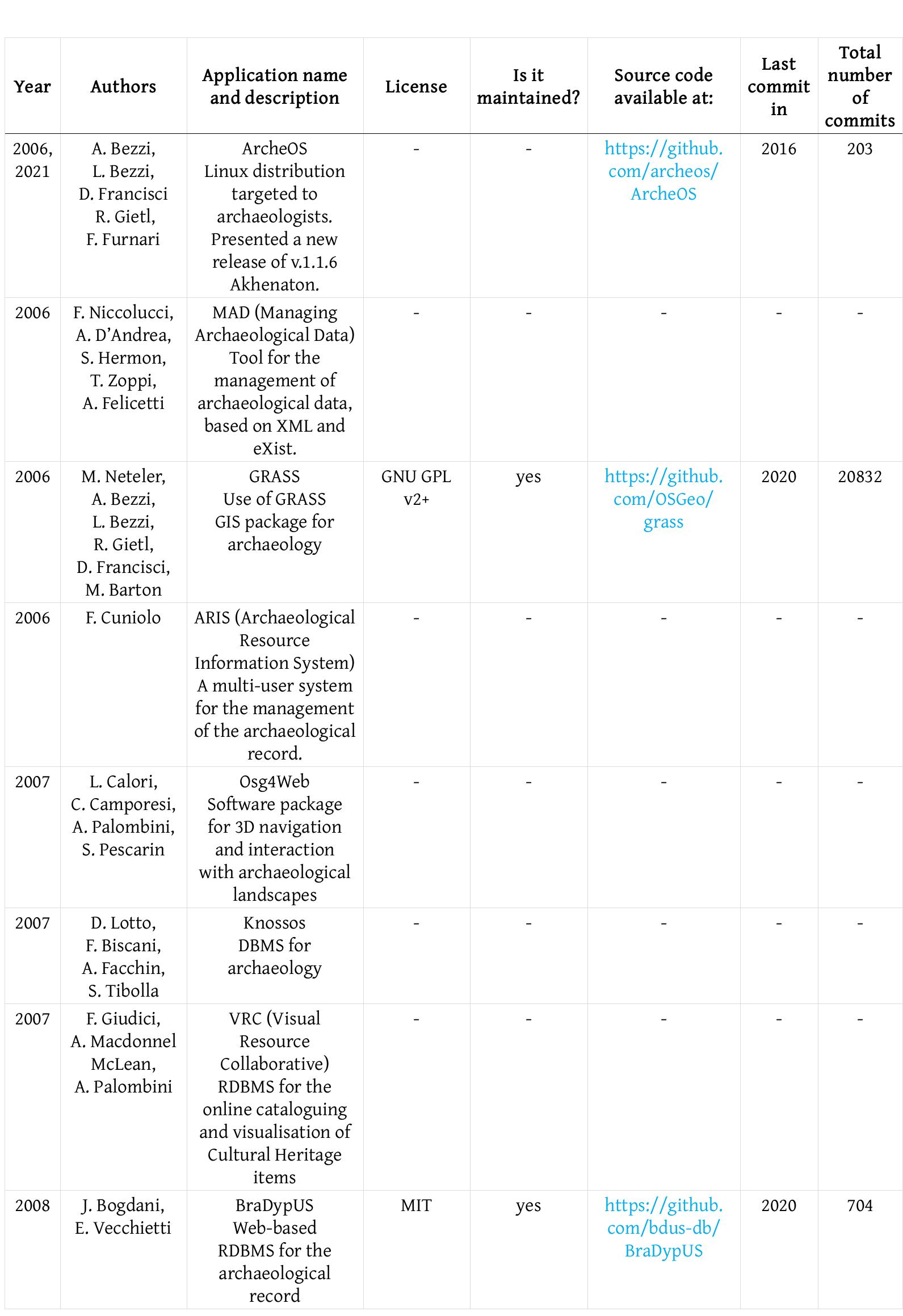 ArcheoFOSS XIV 2020: Open software, hardware, processes, data and formats in archaeological resea... more ArcheoFOSS XIV 2020: Open software, hardware, processes, data and formats in archaeological research collects the proceedings of the fourteenth ArcheoFOSS international conference, held online due to the outbreak of the COVID-19 pandemic. The book gathers seventeen papers on three principal topics, the main sessions of the conference: use and application of free/libre and open-source (FLOS) tools in archaeology; creation, use and promotion of open data and open formats in archaeology; and development and customization of FLOS software and hardware solutions for cultural heritage. Forty-one scholars of very diverse age, academic affiliation and geographic location, but all actively involved in the promotion of FLOS culture, open data and open science in digital archaeology and humanities, contribute. The volume is completed by a critical analysis of the contribution of these important annual meetings to the scientific and cultural activity of the ArcheoFOSS community. The opportunity offered by the pandemic-related difficulties to widen the geographical scope of the conference has been further boosted by the decision to adopt the English language for most of the papers, with the hope that this will extend the work of the ArcheoFOSS community far beyond the Italian national borders.