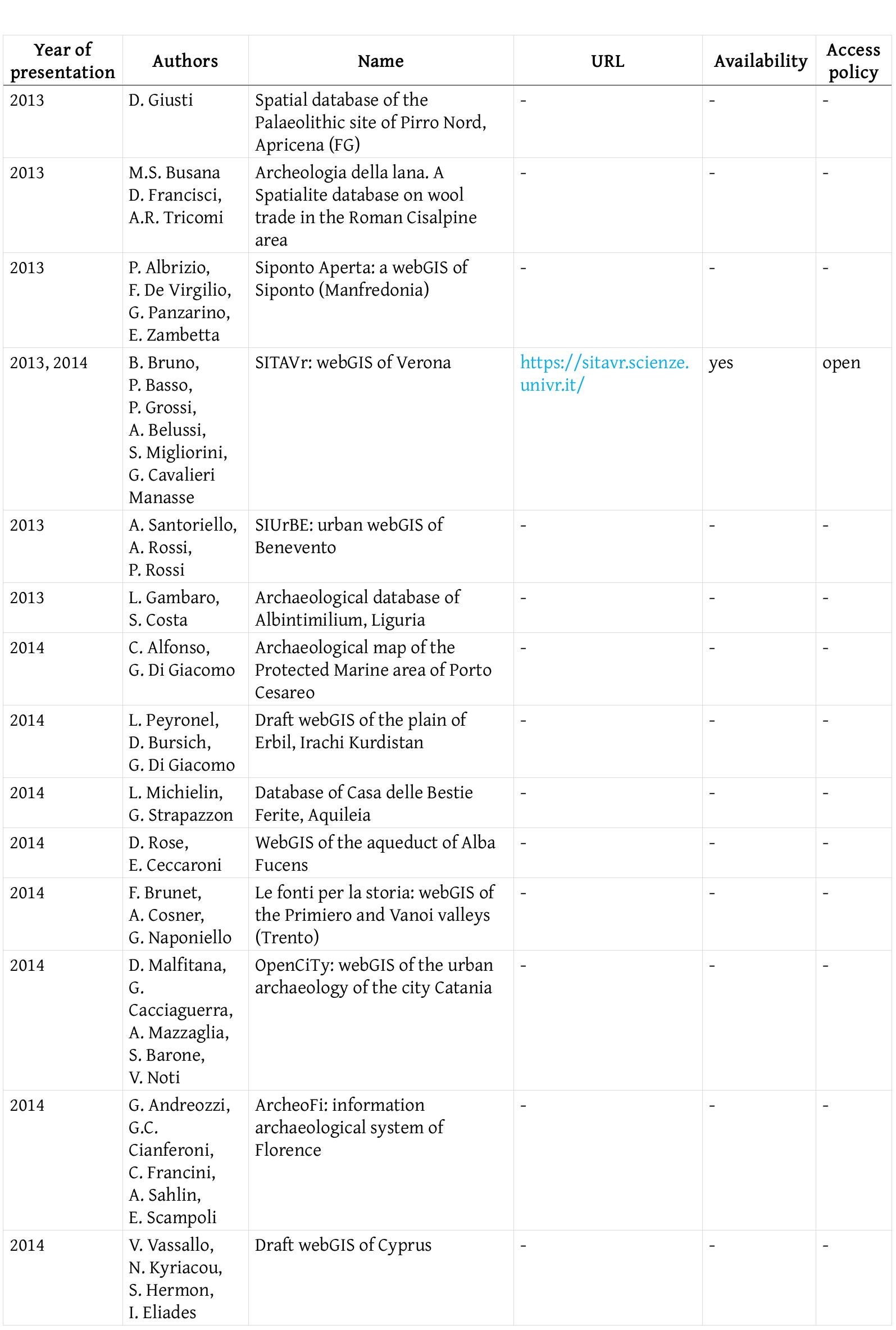 In the year 2017 the authors of the present paper developed a relational DataBase and an integrat... more In the year 2017 the authors of the present paper developed a relational DataBase and an integrated GIS platform using as a case study the Ancient Bronze Age III-IVA1 archaeological contexts and materials ex- cavated by the MAIS Expedition (Italian Archaeological Mission to Syria) at Tell Mardikh/Ebla.