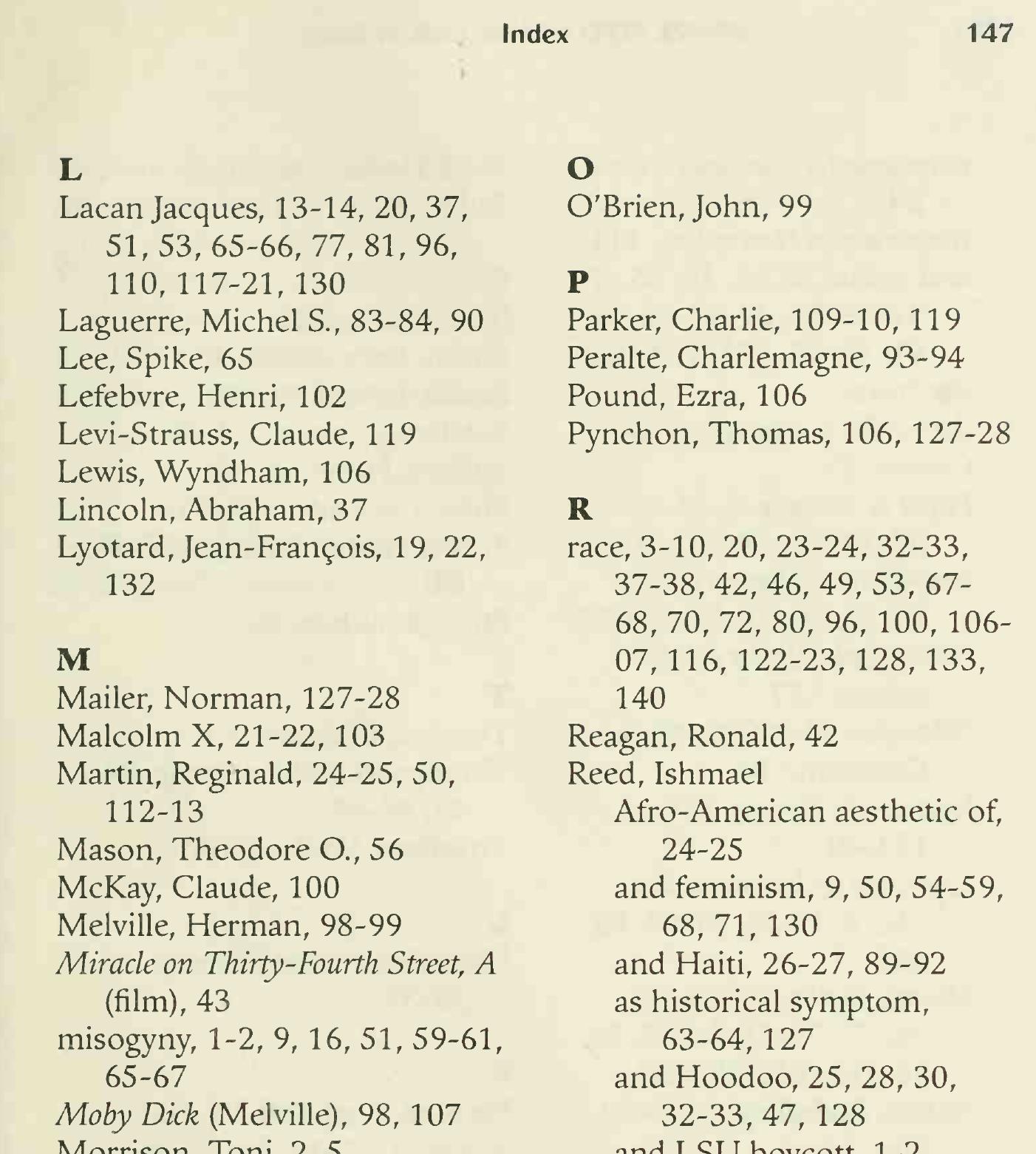 In his analysis of Ishmael Reed's fiction from the perspective of gender and race theory, Patrick... more In his analysis of Ishmael Reed's fiction from the perspective of gender and race theory, Patrick McGee makes a case for the relevance of such fiction to the understanding of contemporary American and Black diasporic cultures. Taking into account Reed's feminist and political critics, McGee argues that Reed's work must be read as a critique of racial ideology. Beginning with questions of critical location and Reed's special understanding of diasporic cultural forms like vodun, the book goes on to examine Reed's paradoxical fictional world as a response - though not a resolution - to the contradictions of postmodern and postcolonial history.