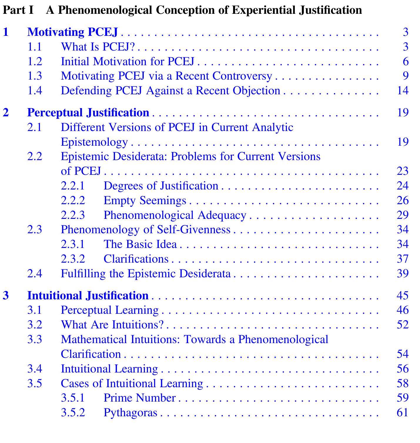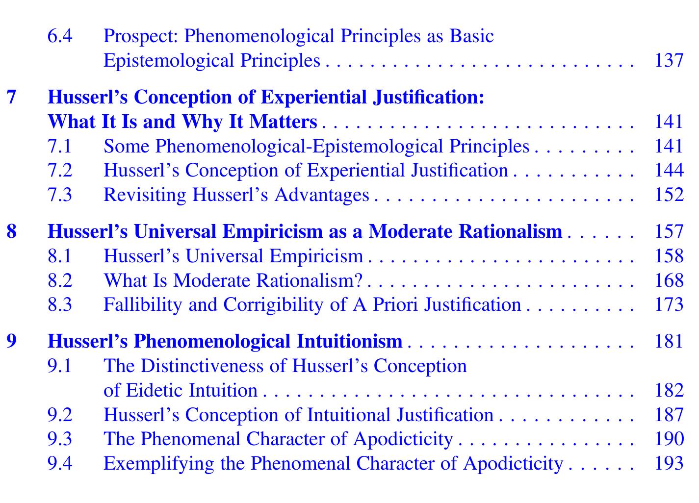 Husserlian phenomenology is an ambitious project, aiming to be First Philosophy, the ultimate sci... more Husserlian phenomenology is an ambitious project, aiming to be First Philosophy, the ultimate science. For Husserl, this means that for any science, indeed for any piece of knowledge, phenomenology must be capable of elucidating the legitimacy of this science or piece of knowledge. But how can phenomenology, a science of the structures of consciousness, serve as the ultimate science? To answer this question, we shed light on Husserl’s teachings on the variety, epistemic force, and systematic role of experiences. The idea, roughly, is that every piece of knowledge can be traced back to epistemically foundational experiences. To be more precise, it is experiences that bear the mark of originary givenness that play this role. Investigating the sources of knowledge, then, means investigating modes of givenness – the ways experiences present the objects they are directed at. Perceptual experiences, introspective experiences, eidetic intuitions, and evaluative experiences are among the various types of originary presentive experiences. In our Husserlian picture, different sources of knowledge correspond to different types of experiences, which in turn correspond to different types of evidence. It is one of the most important tasks of phenomenology to clarify these correlations.
