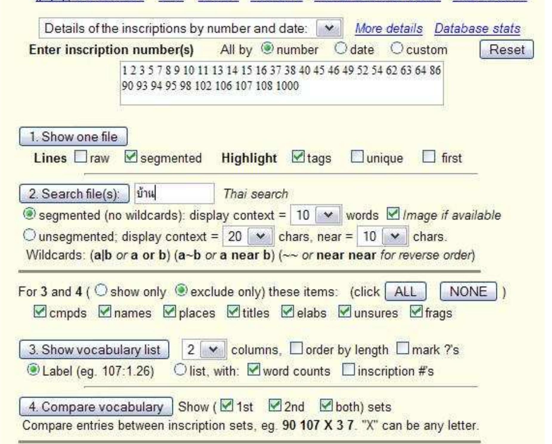 This study will return to the earliest Thai texts: the corpus of epigraphic inscriptions of the Sukhothai kingdom. The corpus is comprised of around 100 texts, of varying lengths, found on primarily stone inscriptions dating from the 13th-15th centuries CE. This corpus begins with the genesis of Thai writing and extends until the decline of Sukhothai. Under the auspices of a previous Fulbright grant, these texts have been compiled, romanized, and analyzed by the author.