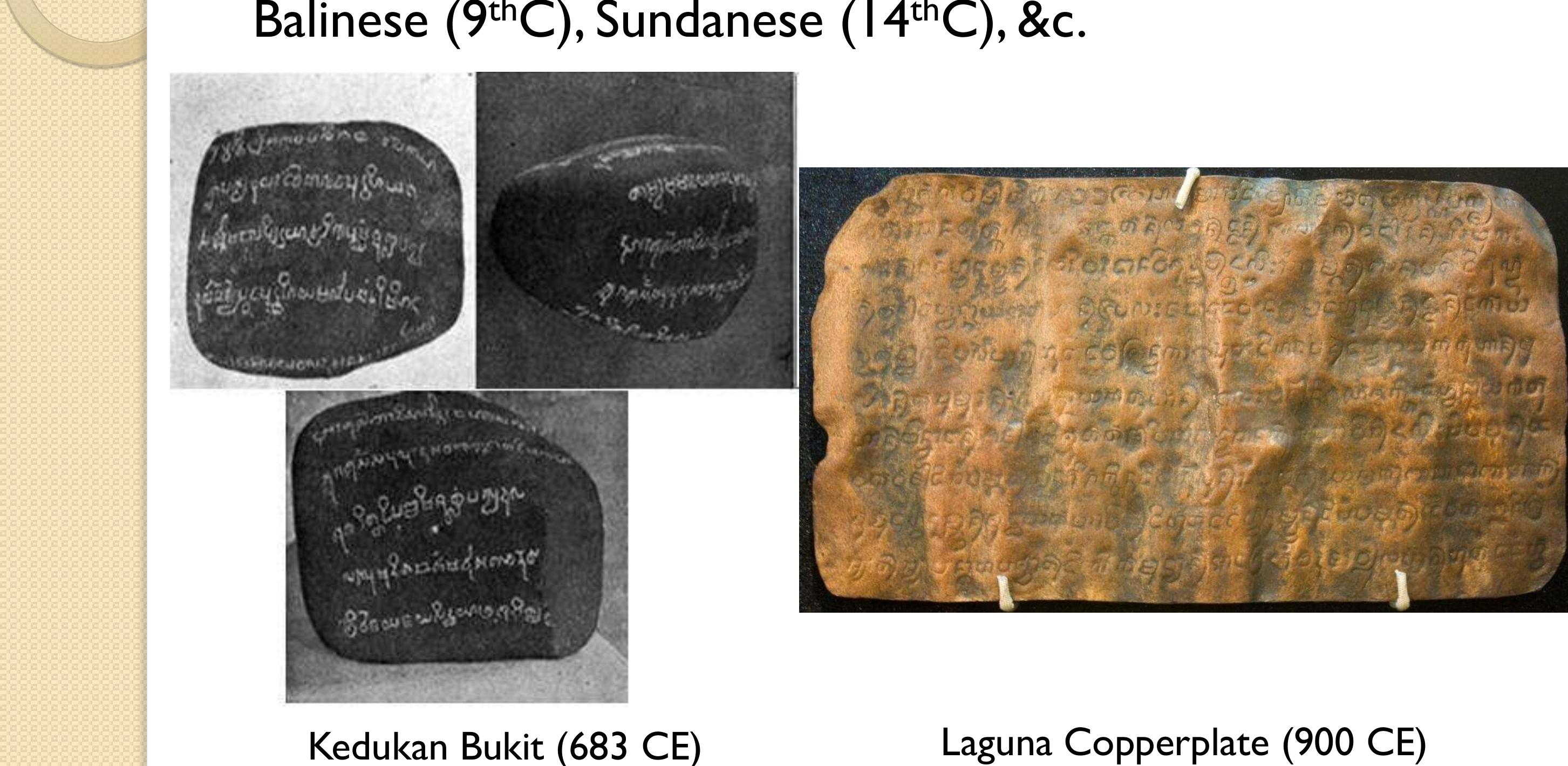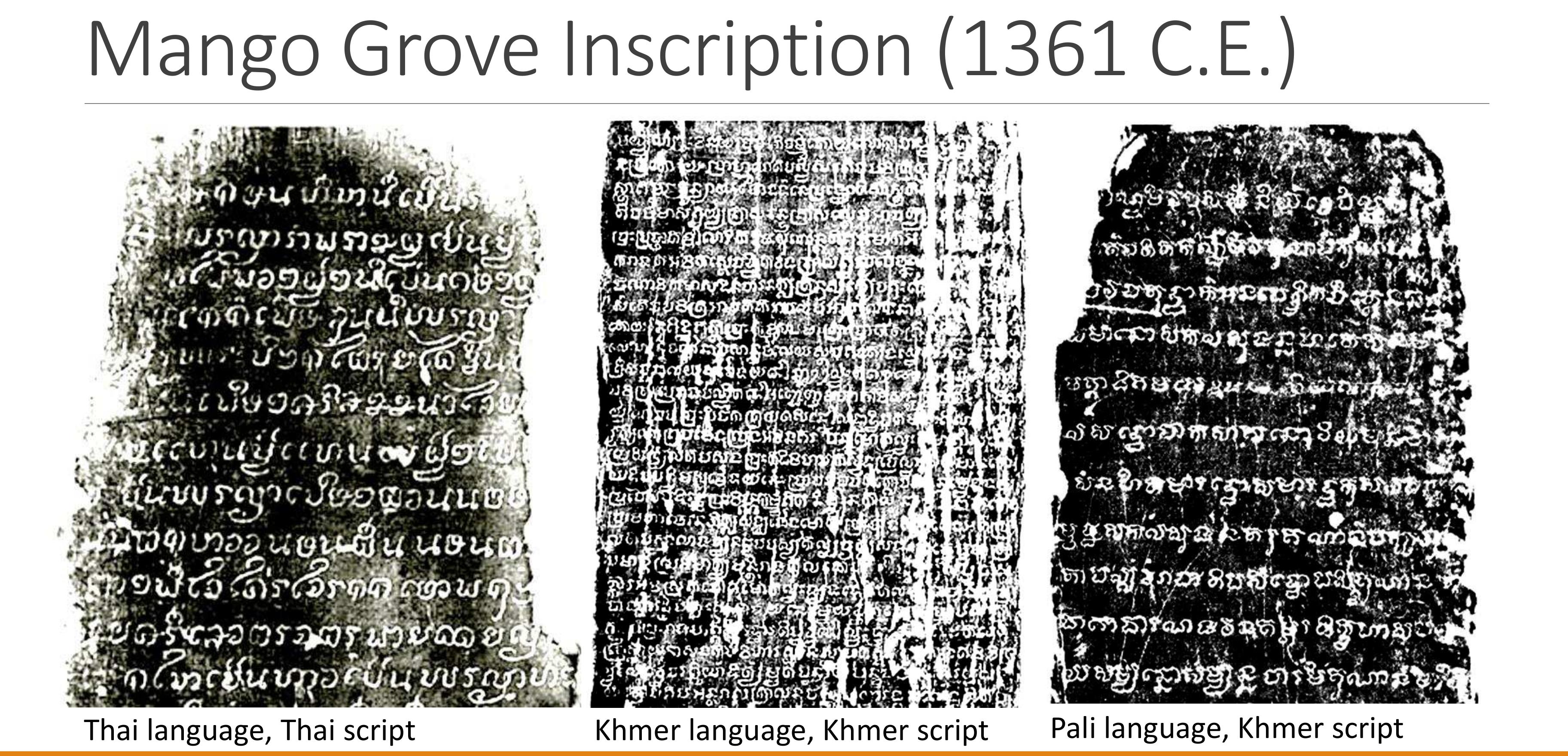 Abugida writing systems from the Brahmic script family date back in Southeast Asia more than 1500... more Abugida writing systems from the Brahmic script family date back in Southeast Asia more than 1500 years. They still dominate mainland Southeast Asia, and were once widely used throughout maritime Southeast Asia as well. A rich epigraphic record of mostly stone and metal inscriptions has long been appreciated for the historical information it provides. However, its linguistic content remains sorely underutilized, despite being an abundant source of evidence and insight into the intricate history of contact between Southeast Asian’s major language families.
